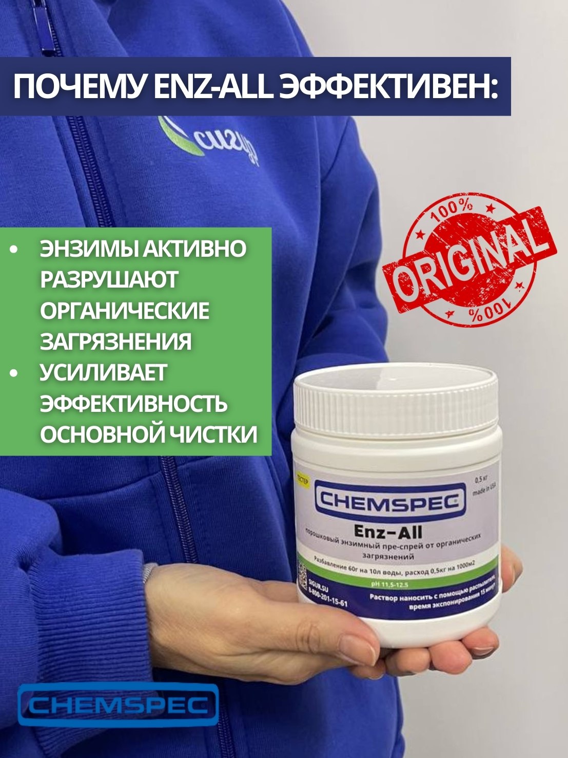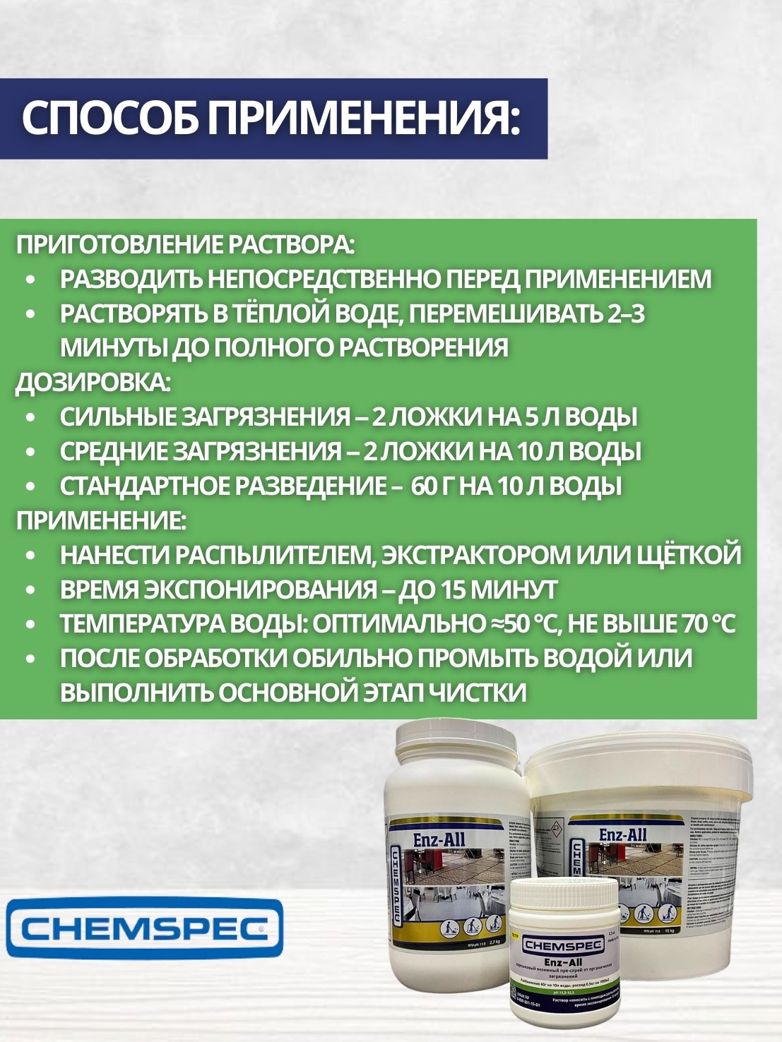 Chemspec: Enz-All (Энз-Ол) 0,5кг.энзимный преспрей от органических загрязнений (фасовка.тестер)