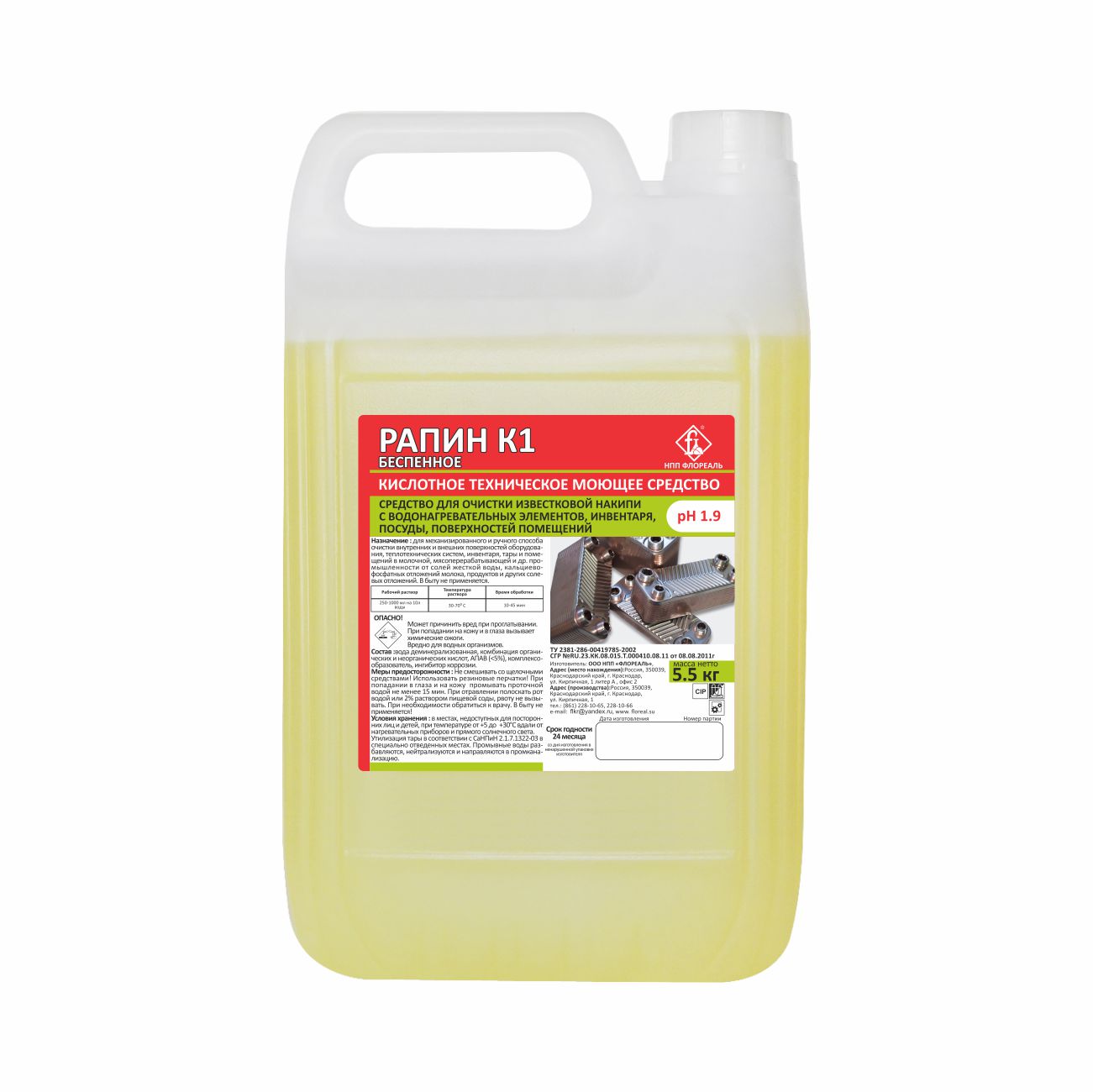 Флореаль: Рапин К1 Моющее средство беспенное для оборудования 5,5кг