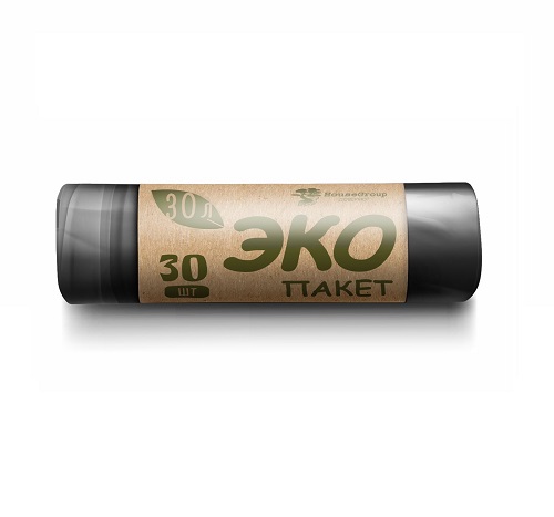 Мешки для мусора: 30л ЭКО ПНД, черные, 15мкм, 55*50см, 15шт/рул, 30рул/уп
