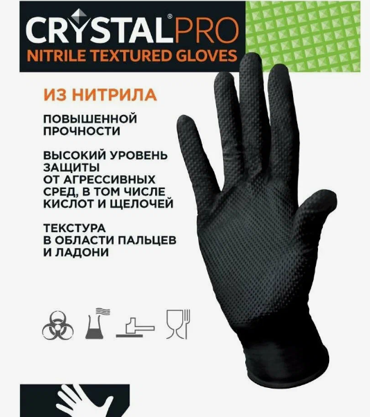 Перчатки CRYSTAL PRO черные М нестерильные нитрил 25пар/пач