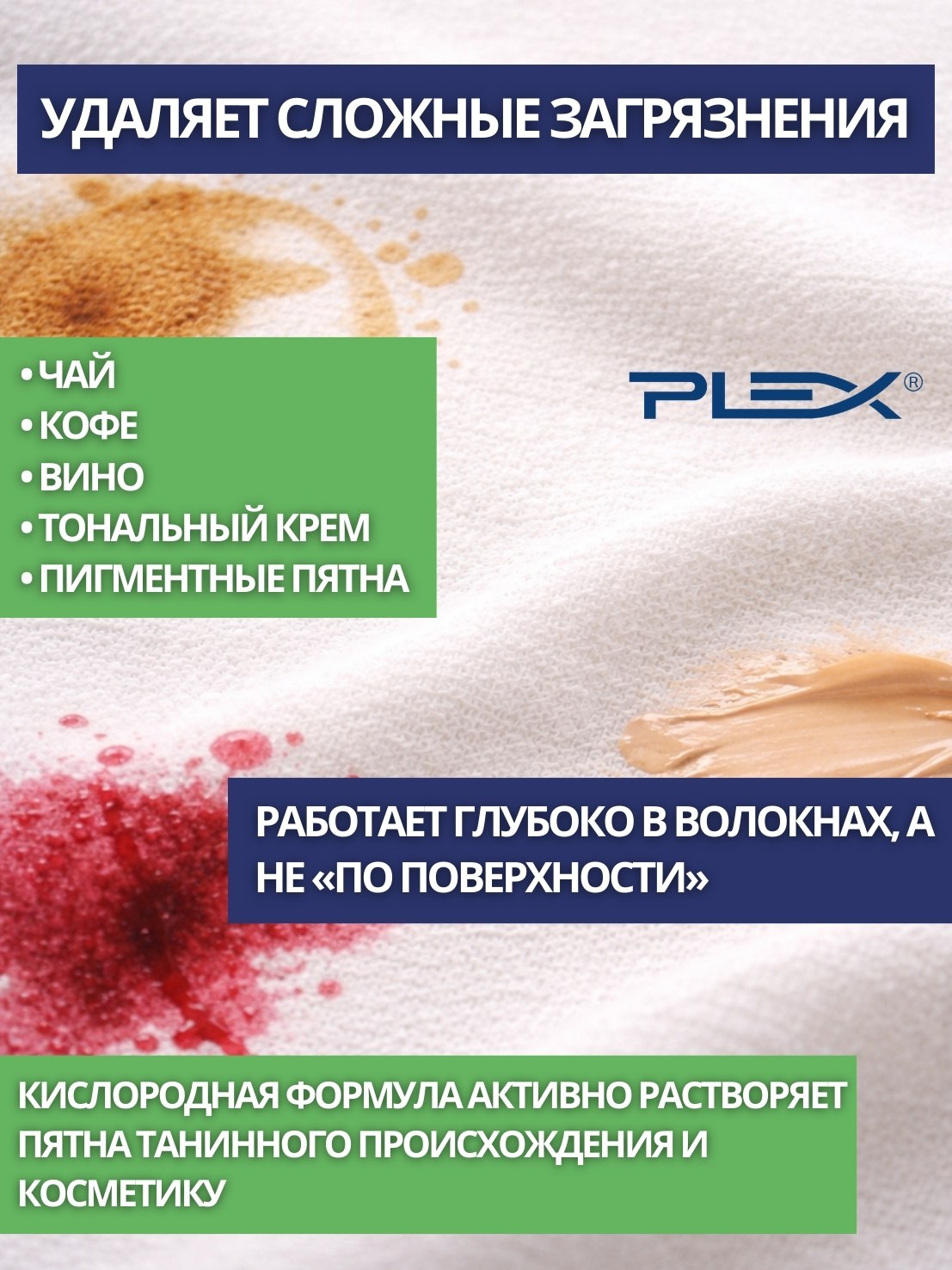 • Удаление различных типов загрязнений: чай, кофе, вино, тональный крем и др.,