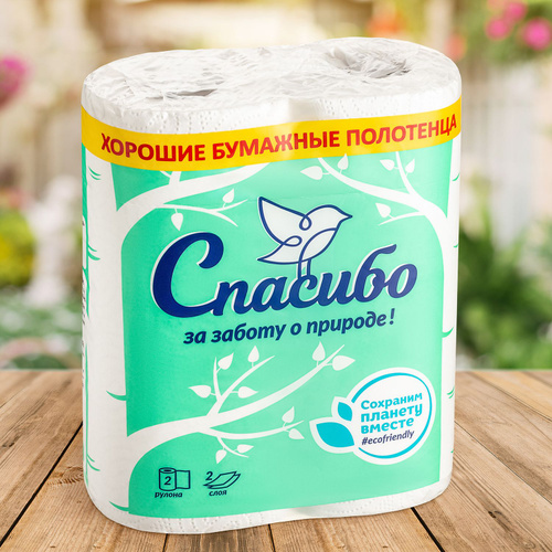 Полотенца бумажные Plushe "Спасибо за заботу" рулонные, 2сл, 10м, 2рул/пач, 12пач/уп, белые