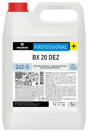 Pro-Brite: BX 20 DEZ 5л/4шт. дезинфицирующий моющий концентрат для отбеливания плитки