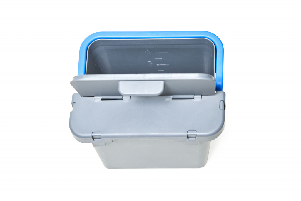 Компактное прямоугольное ведро может быть использовано как с крышкой так и без для хранения и ношения мелкого ручного инвентаря, салфеток и моющий насадок или для полоскания или замачивания салфеток. Ведро и крышка выполнены в сером цвете, который хорошо маскирует загрязнение при длительной эксплуатации.