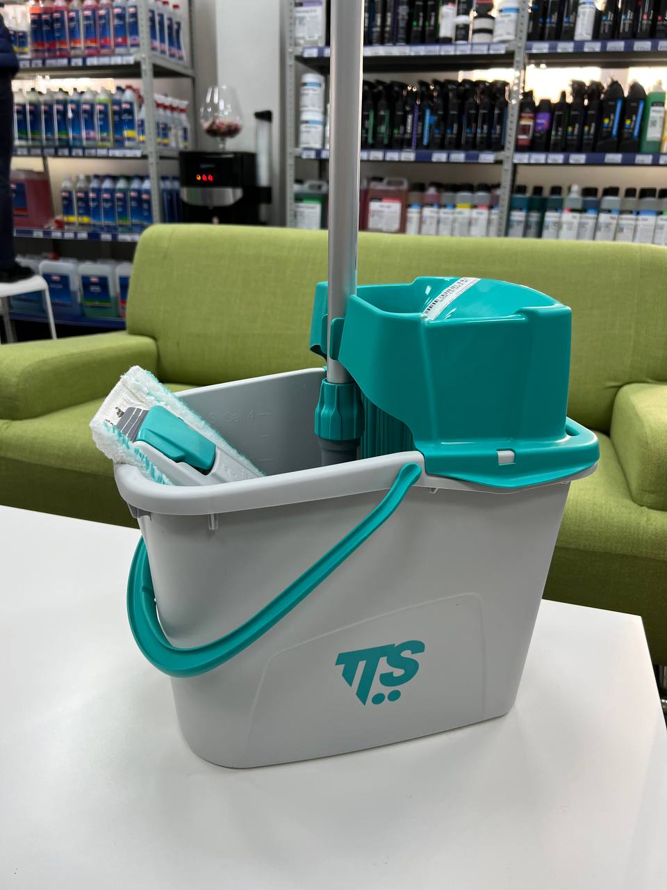В комплекте: ведро 14 литров, флаундер и моп микрофибра 35 см.