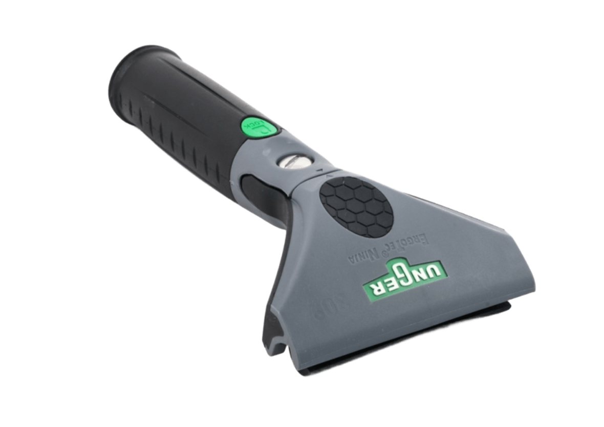 Рабочий узел поворачивается на 180°. Это облегчает работу в труднодоступных местах и на высоте с помощью телескопических штанг. Усилие, которое требуется для поворота, можно легко отрегулировать специальным винтом с помощью обычной монетки. Специальная зеленая кнопка позволяет зафиксировать держатель в центральном положении. S-планка закрепляется в держателе благодаря специальному механизму, который, с одной стороны, гарантирует прочное закрепление, а с другой - позволяет быстро и легко менять положение планки или заменять ее на планку другого размера.Использование планок большой длины значительно снижает время мытья больших окон и повышает производительность труда. Держатель надежно фиксируется на телескопических штангах Unger.