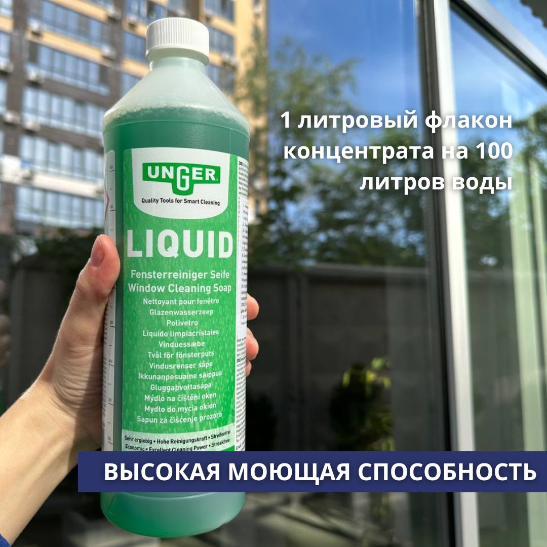 Средство не раздражает кожу, обладает высокой моющей способностью, безопасно для стекол, уплотнителей и рам, не оставляет разводов и следов, не взаимодействует с резиной стеклоочистителей. Наилучший результат будет, если воспользоваться профессиональным оборудованием для мытья окон фирмы "Unger".