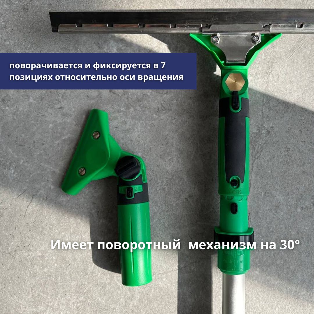 Без труда фиксируется на шесте (длина которого может доходить до 7 метров), и можно работать с высокими окнами и стеклянными фасадами, обеспечивая тщательную и эффективную мойку на любых площадях.