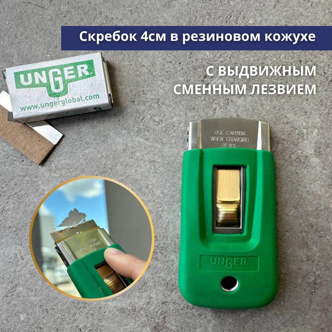 Unger: Скребок 4см в резиновом кожухе с выдвижным сменным лезвием SR04K (SR03K)
